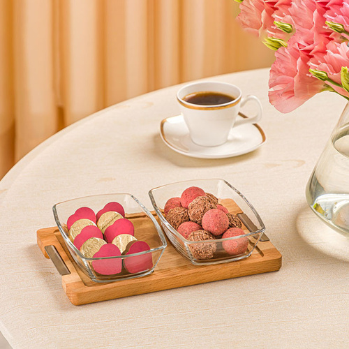 سایر توضیحاتاردو خوری بزرگ 2 عددی پایه چوبی لیمون، جنس کاسه ها از شیشه و جنس استند از چوب است. این محصول مناسب سرو و پذیرایی انواع شکلات، تنقلات و … می باشد.