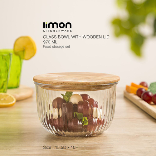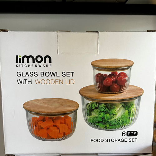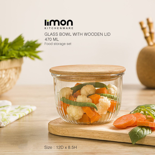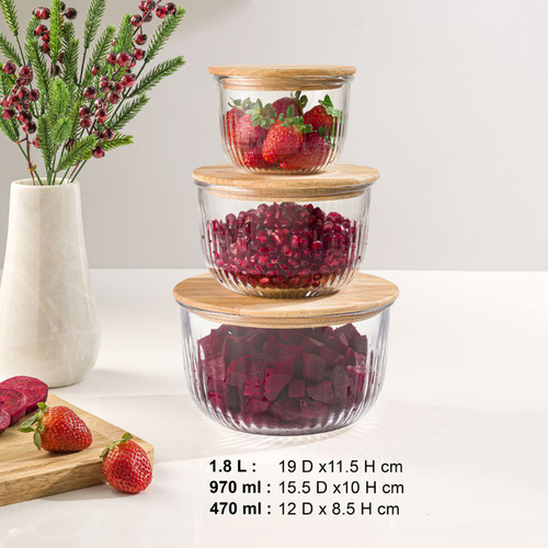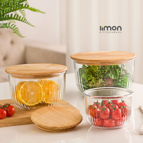 ظرف نگهدارنده لیمون مدل گرد شیاردار درب چوبی مجموعه 3 عددی